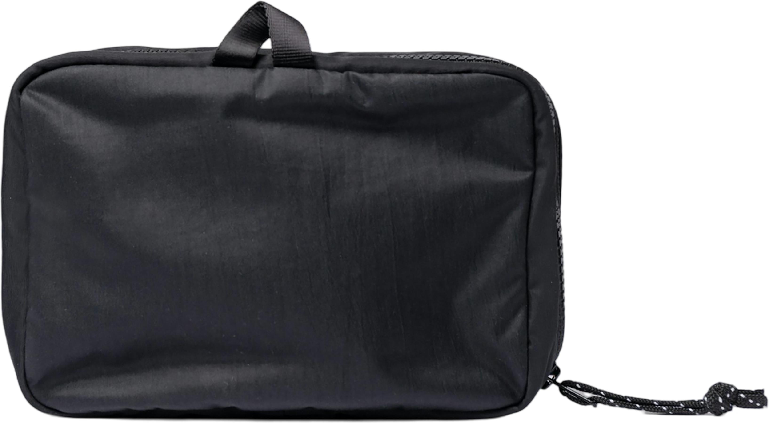 Trousse de toilette fonctionnelle en 100% nylon recyclé, doublée de polyester déperlant 100% recyclé. La trousse de toilette peut contenir 4,5L et elle est pourvue d’un crochet et d’une fermeture à glissière qui fait tout le tour de la trousse pour une organisation facile. Il y a deux poches en tissu mesh à l’intérieur, une avec un élastique et une avec une fermeture à glissière. Une des poches est pourvue d’une section séparée pour votre brosse à dents.